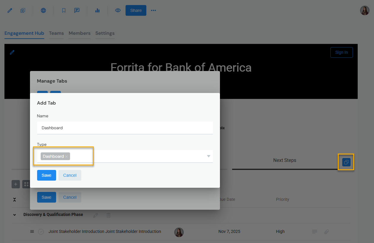Use Plan Tabs to display and share plans on an Engagement Hub. You can have one or multiple Plan Tabs.