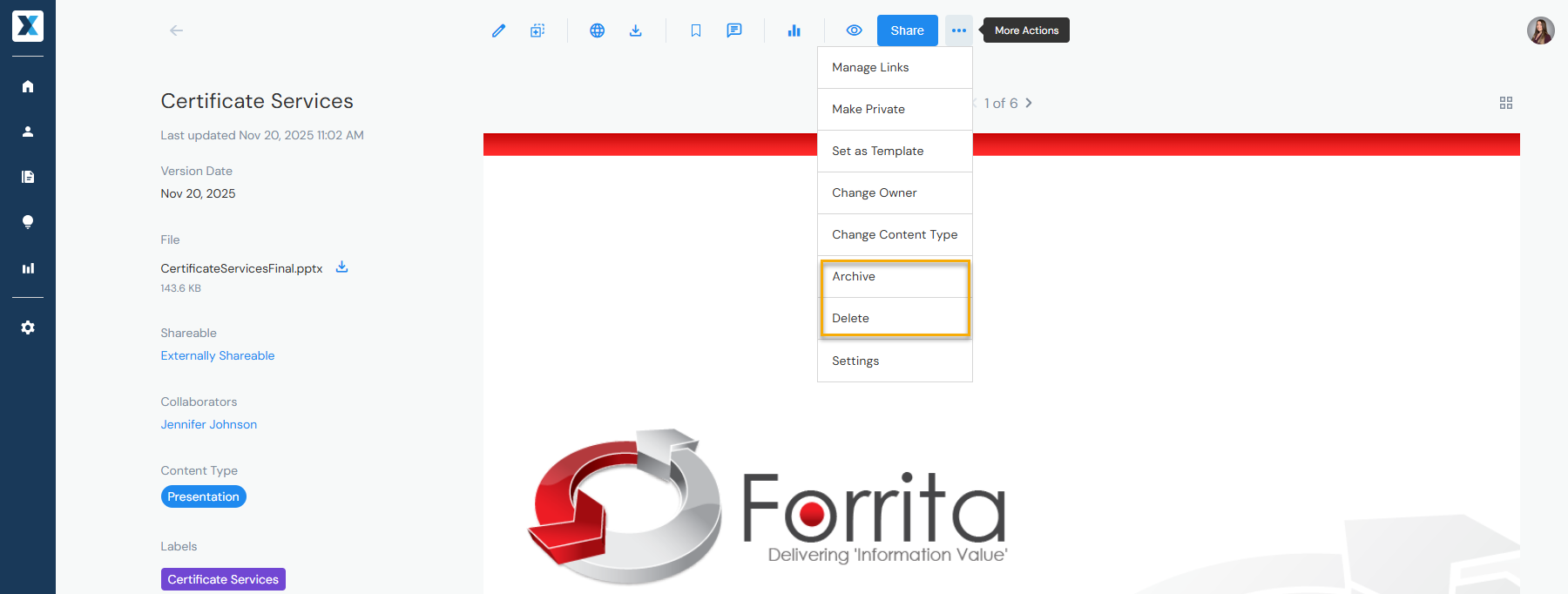 Similar to save options, the ability to delete or archive content depends on your system role.