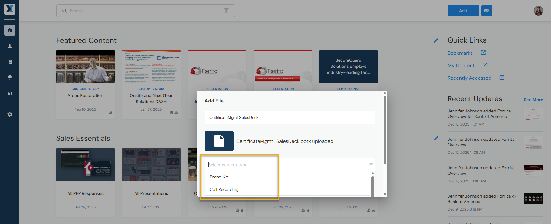 Admins can modify Content Types from Company Settings > Content Types tab (learn more).