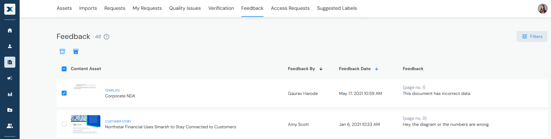 When you submit content Feedback, view it here. Option to archive and unarchive Feedback:
