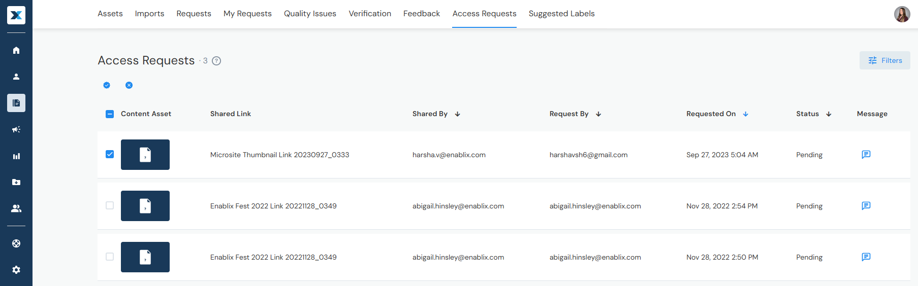 If users try to access content with an Access Group they do not belong to, they can request access and an Admin review requests here. Approve or reject requests: