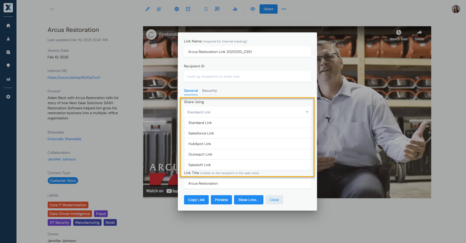 Enablix offers a wide variety of platform-specific links at no additional cost. Don't see a sharing link for your platform? Contact your Enablix Customer Success Manager or support (help@enablix.com).