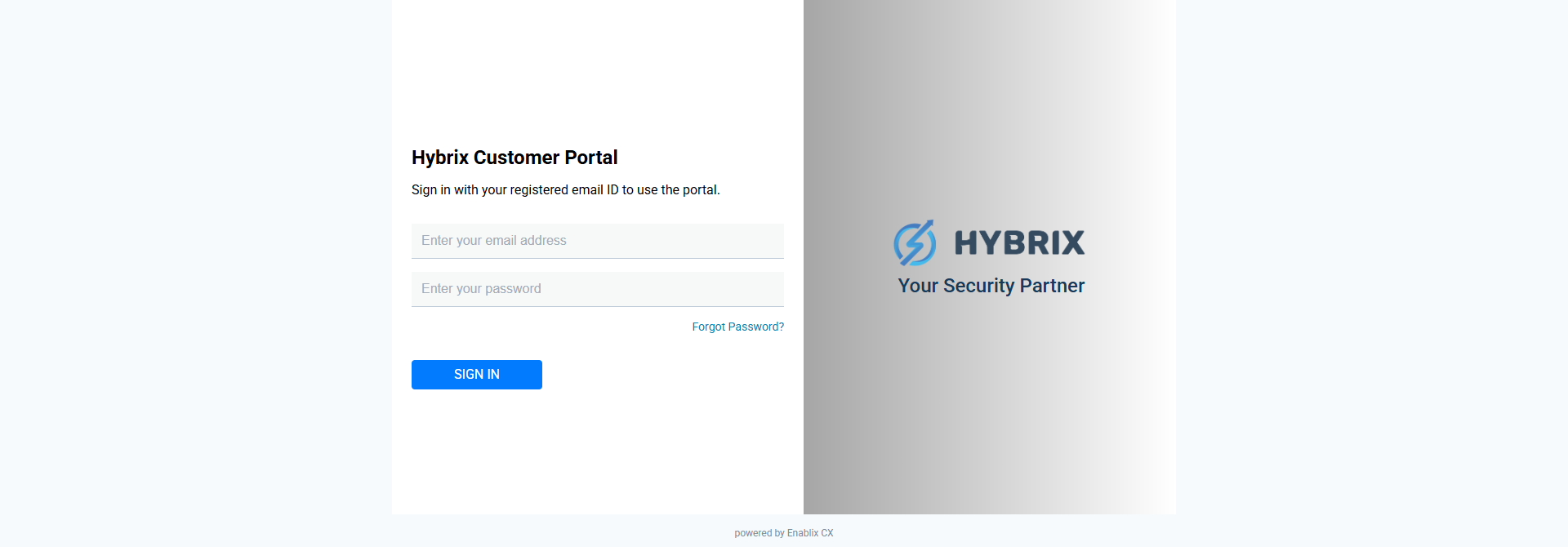 If you require CX Users to sign in to access the CX Portal, your Enablix Customer Success Manager will help you design the login page during setup. Example login page: