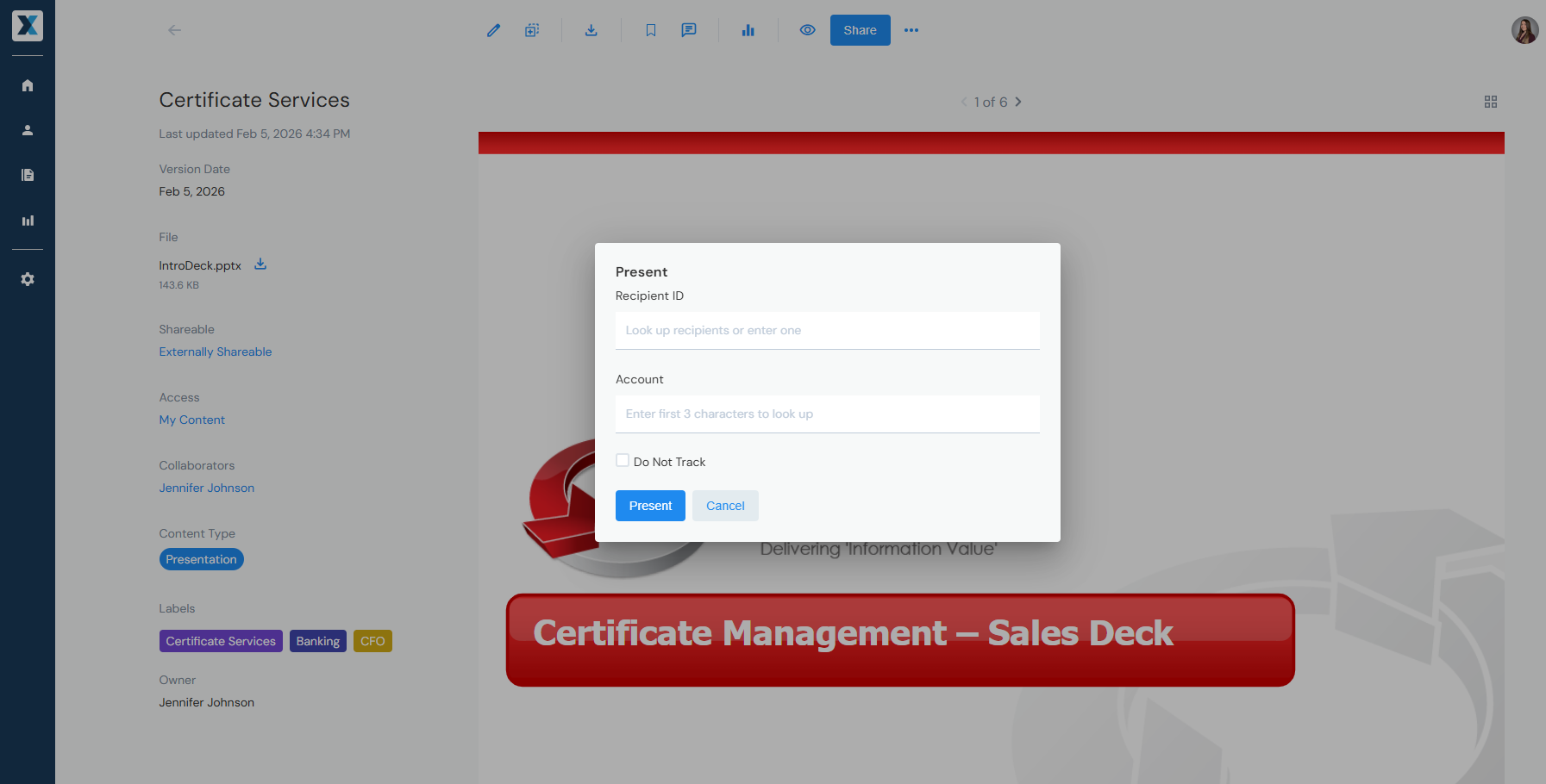 - Content in Enablix is always up to date — presenting from the platform means you're never sharing an outdated version