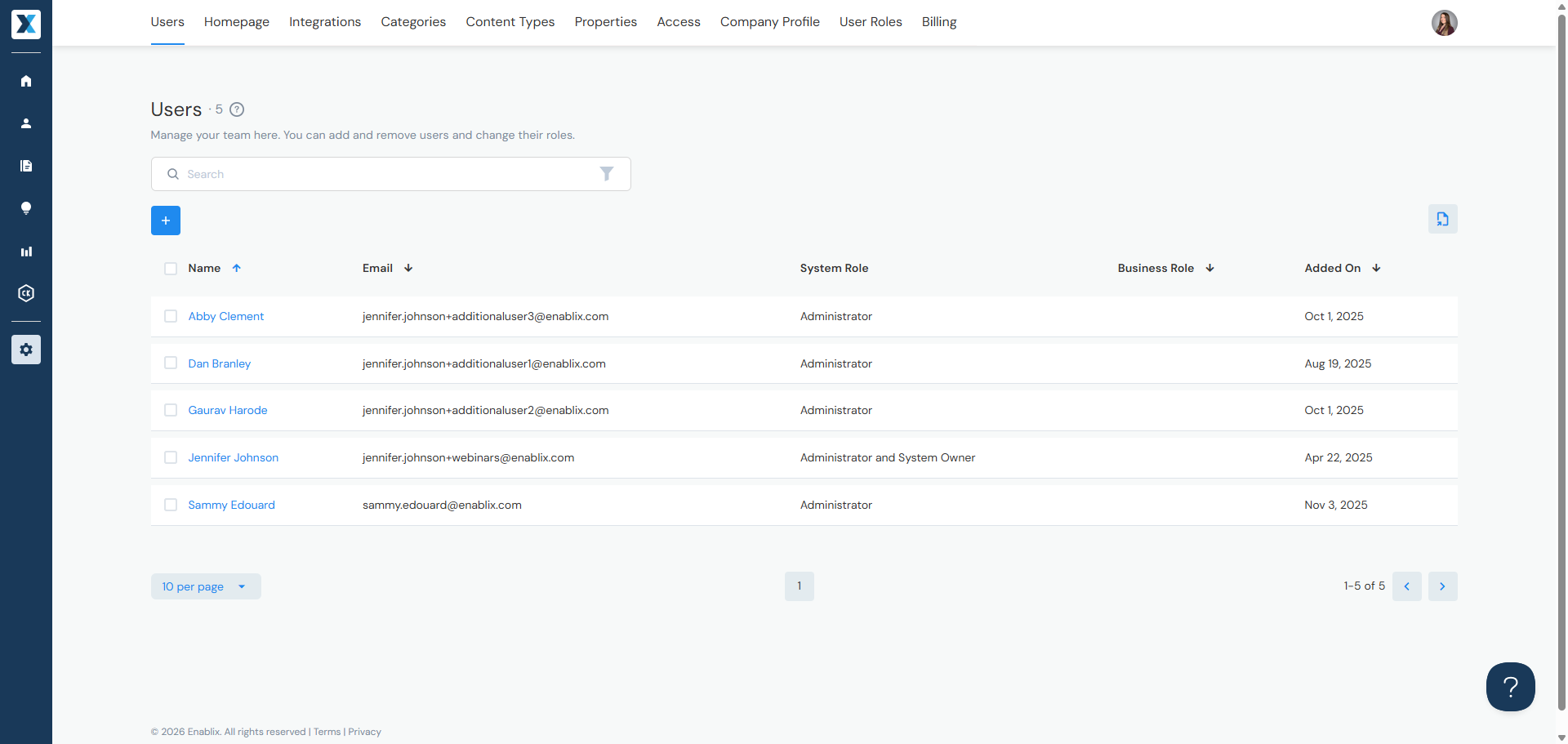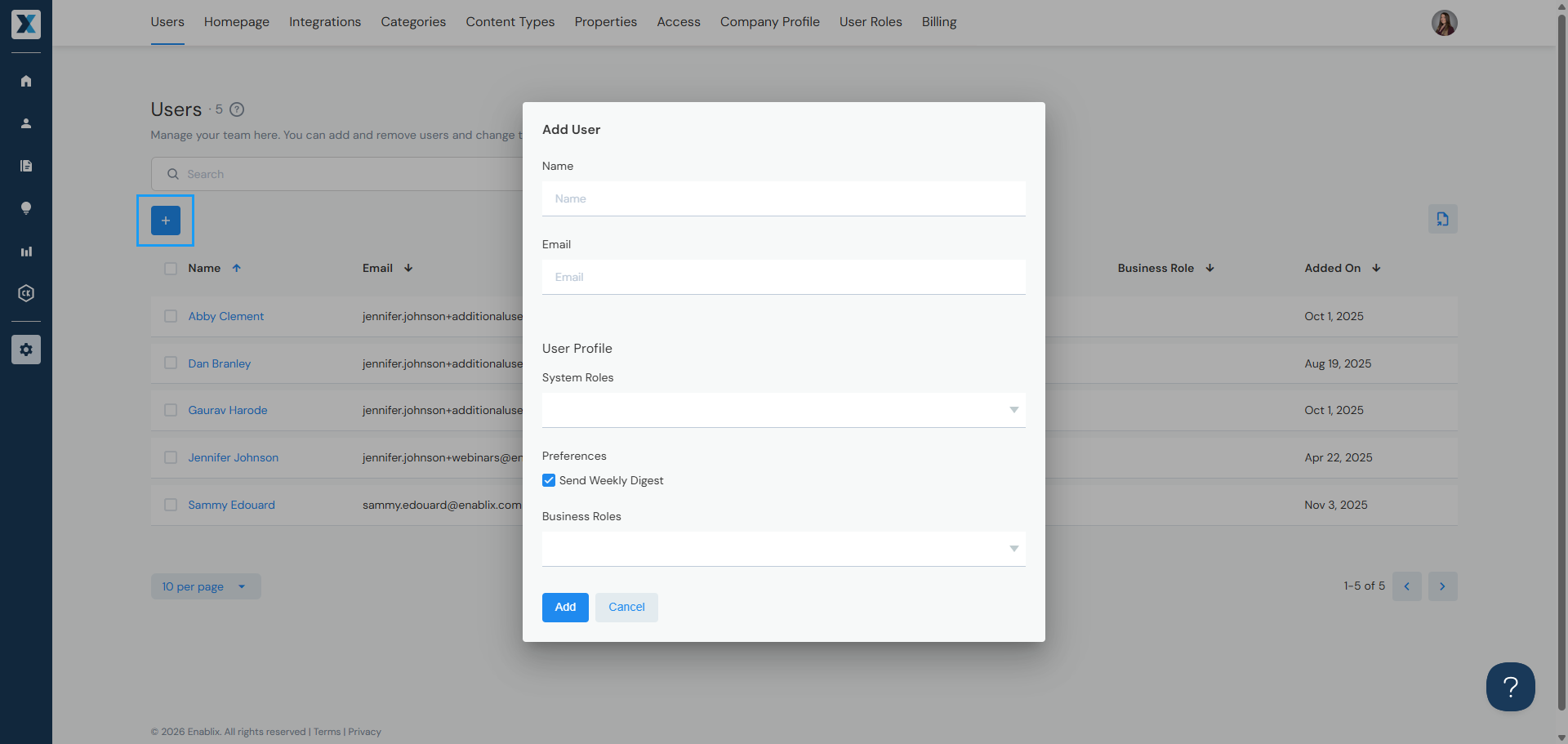 - Click Save — the user will receive a welcome email from support@enablix.com