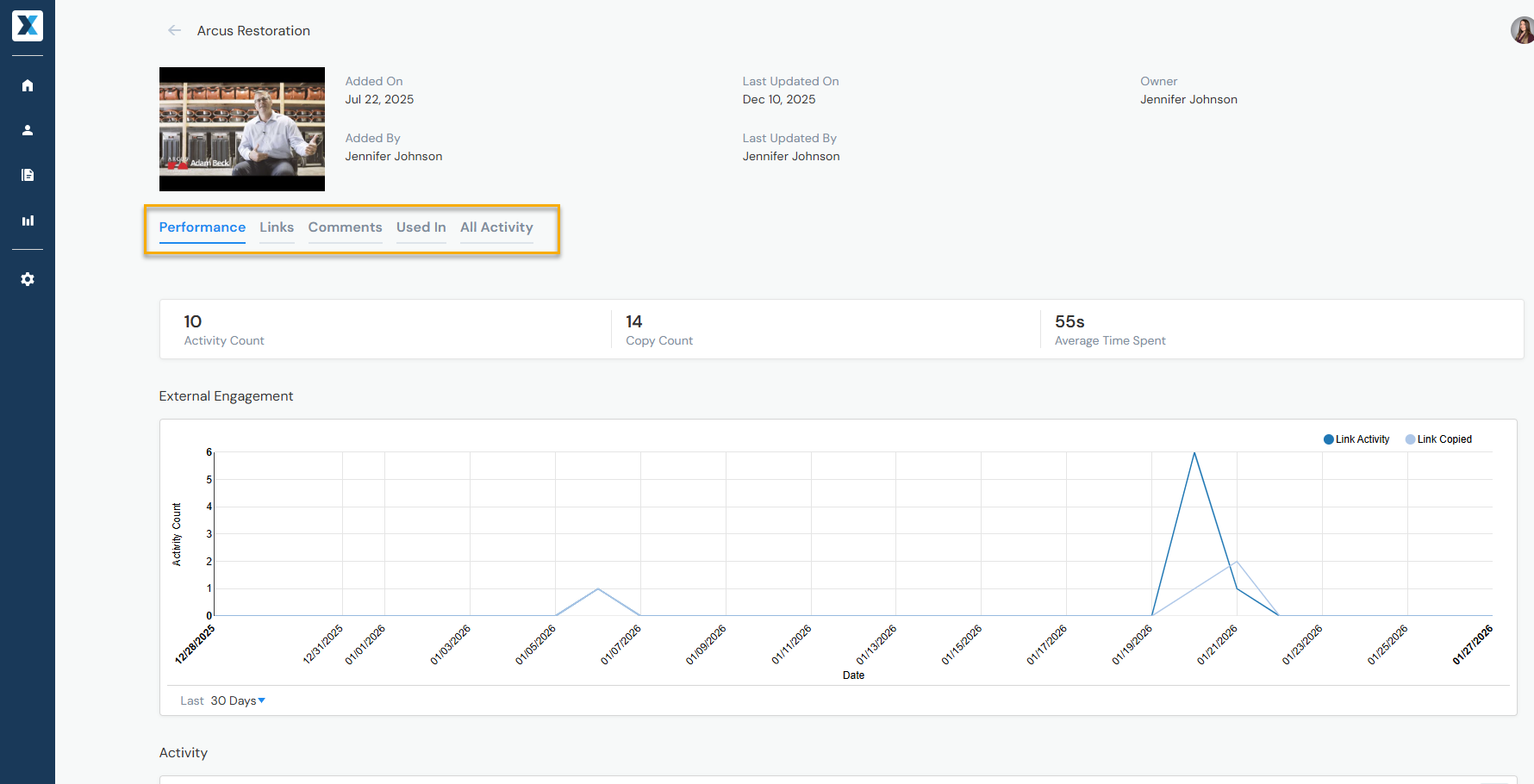 - All Activity** Internal engagement - which Enablix users have interacted with this content (who accessed, added, or updated it)