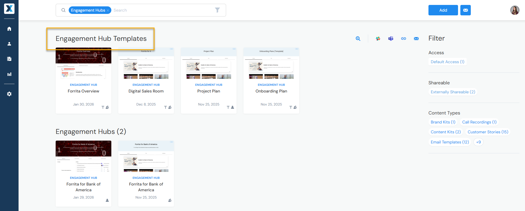 Admins and approved contributors can designate any content in Enablix as a template. When searching by content types, templates are displayed first: