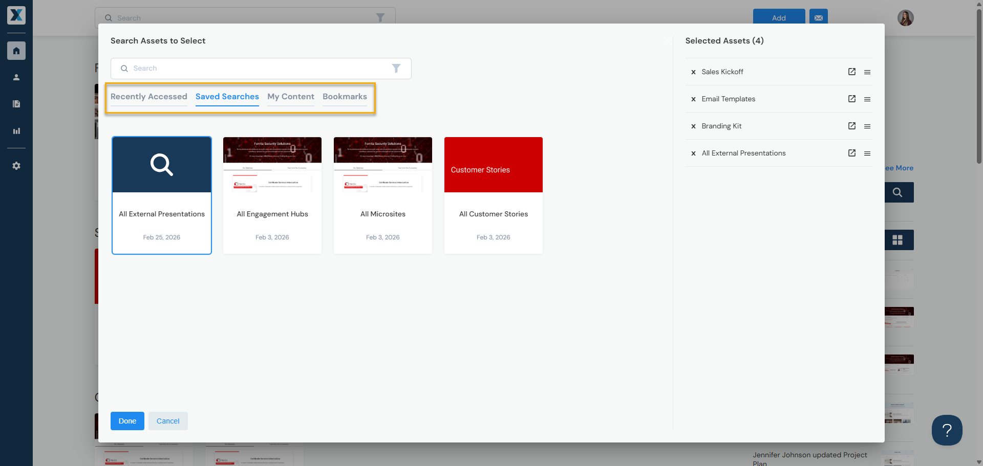 Admins can create Saved Searches to highlight specific content in Enablix — popular to display on the homepage: