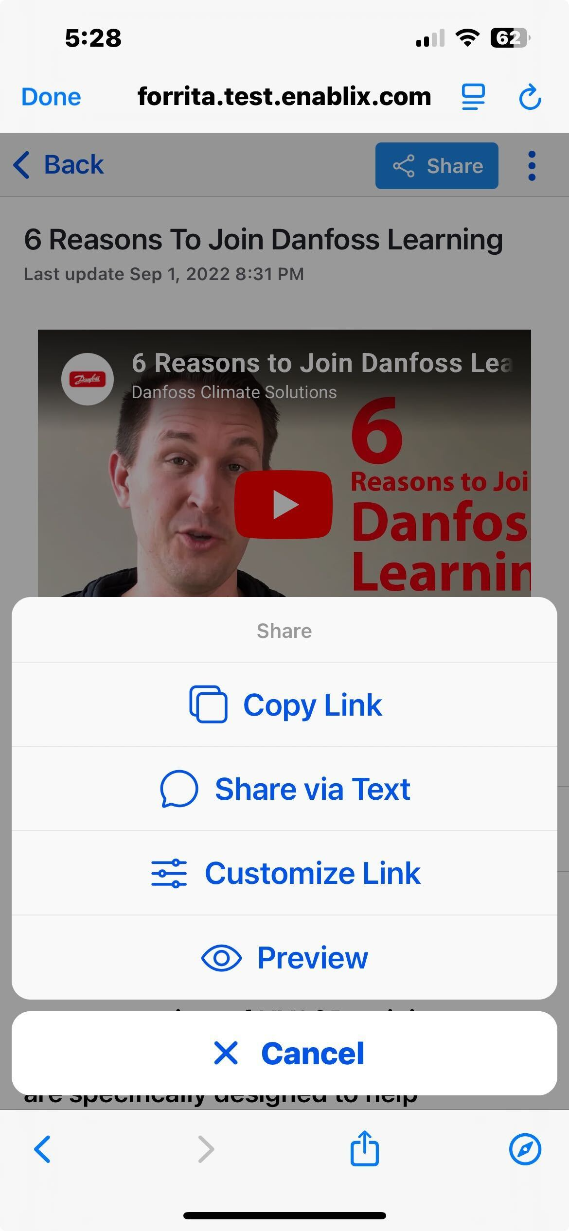 In the Enablix mobile app, when you open content and click Share, you have the following options: